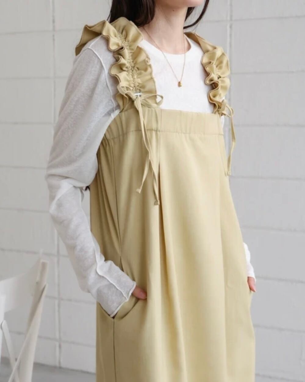 肩ギャザーワンピース