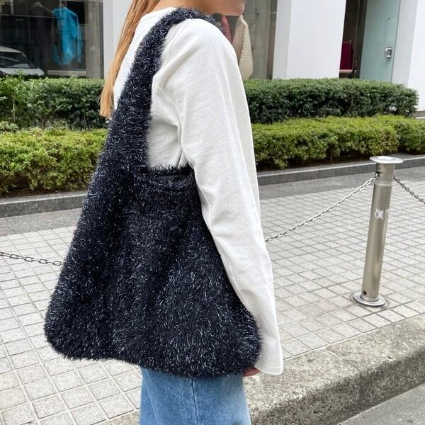 ■光沢感が今年らしいラメフェザーニット素材で持つだけでいつものコーデが華やかな印象に
