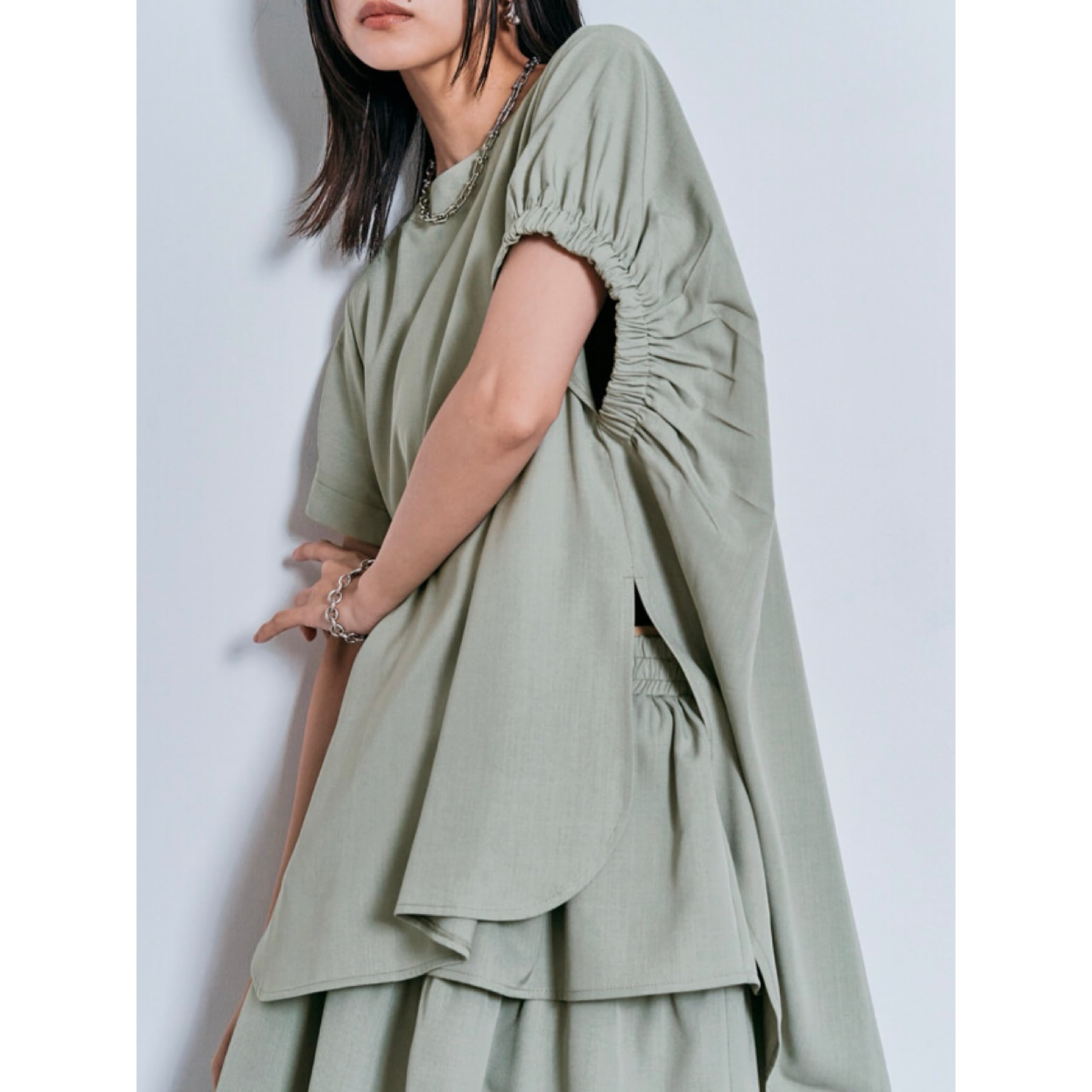■接触冷感のコクーンシルエットハーフスリーブトップス