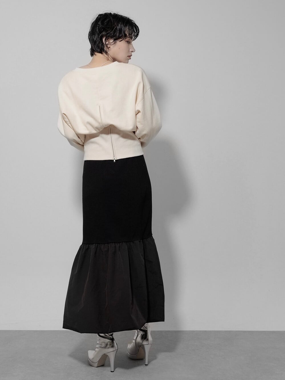 バックジップなので、少し開けてインナーとの色合いを楽しむこともできます。